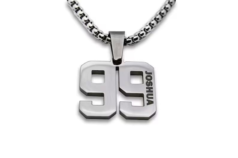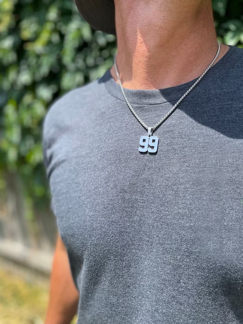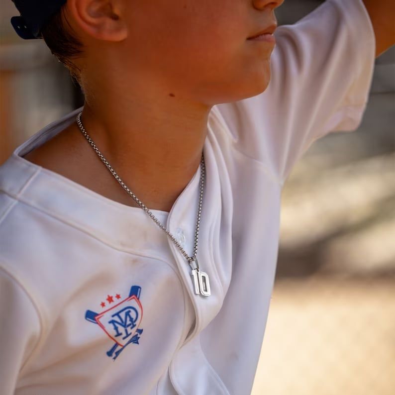Vores specialfremstillede nummerhalskæde er stærk og holdbar. De er meget modstandsdygtige over for anløbning og falmning. Fantastisk til enhver atlet i enhver sport, der ønsker at fremhæve deres trøjenummer! De har den perfekte størrelse, hvis du leder efter en nummerhalskæde til drenge, piger, mænd eller kvinder!